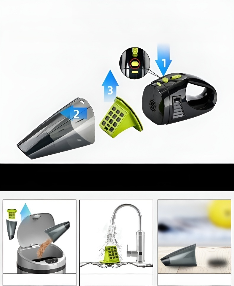مكنسة لاسلكية للسيارة سهلة الحمل والتخزين